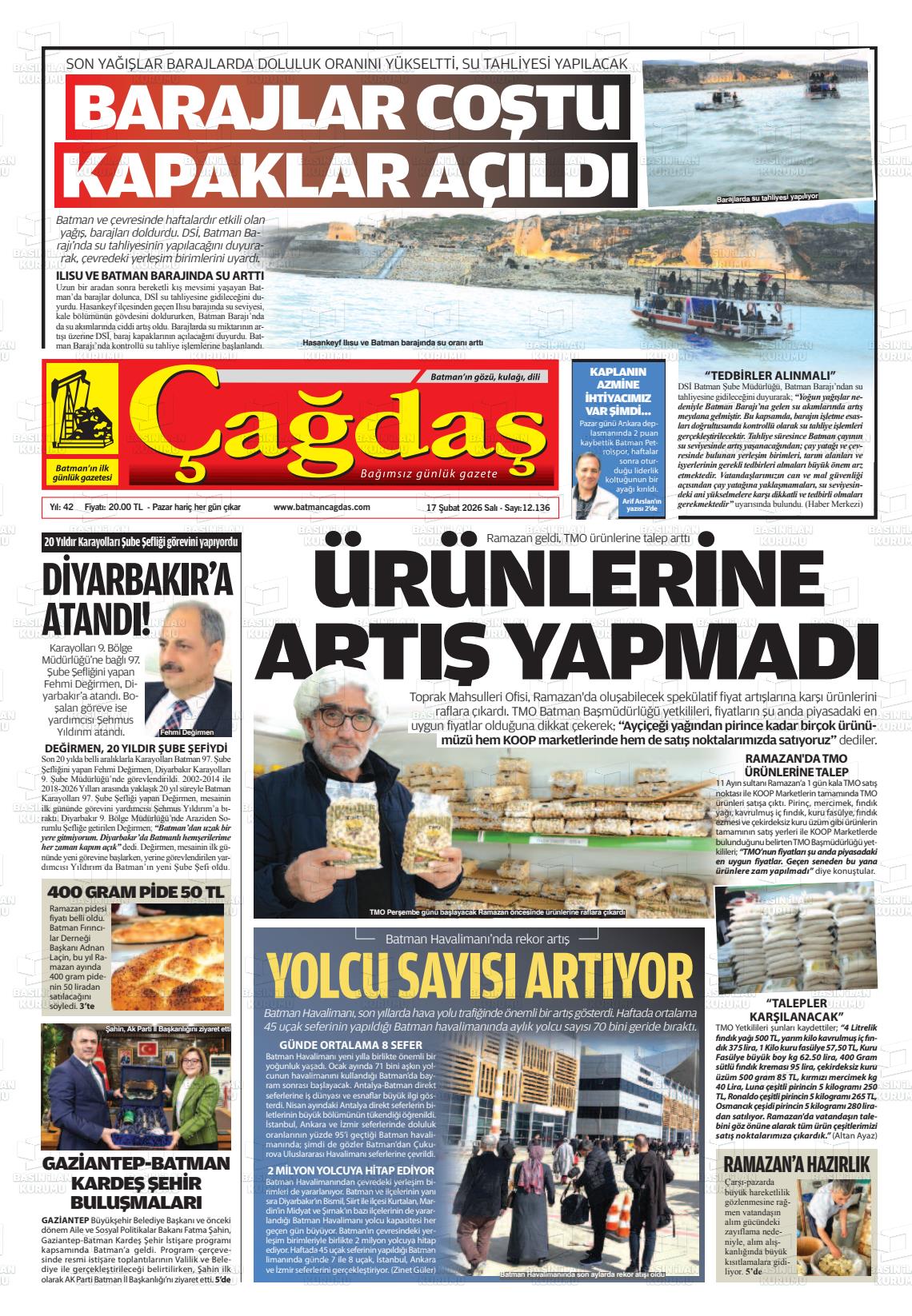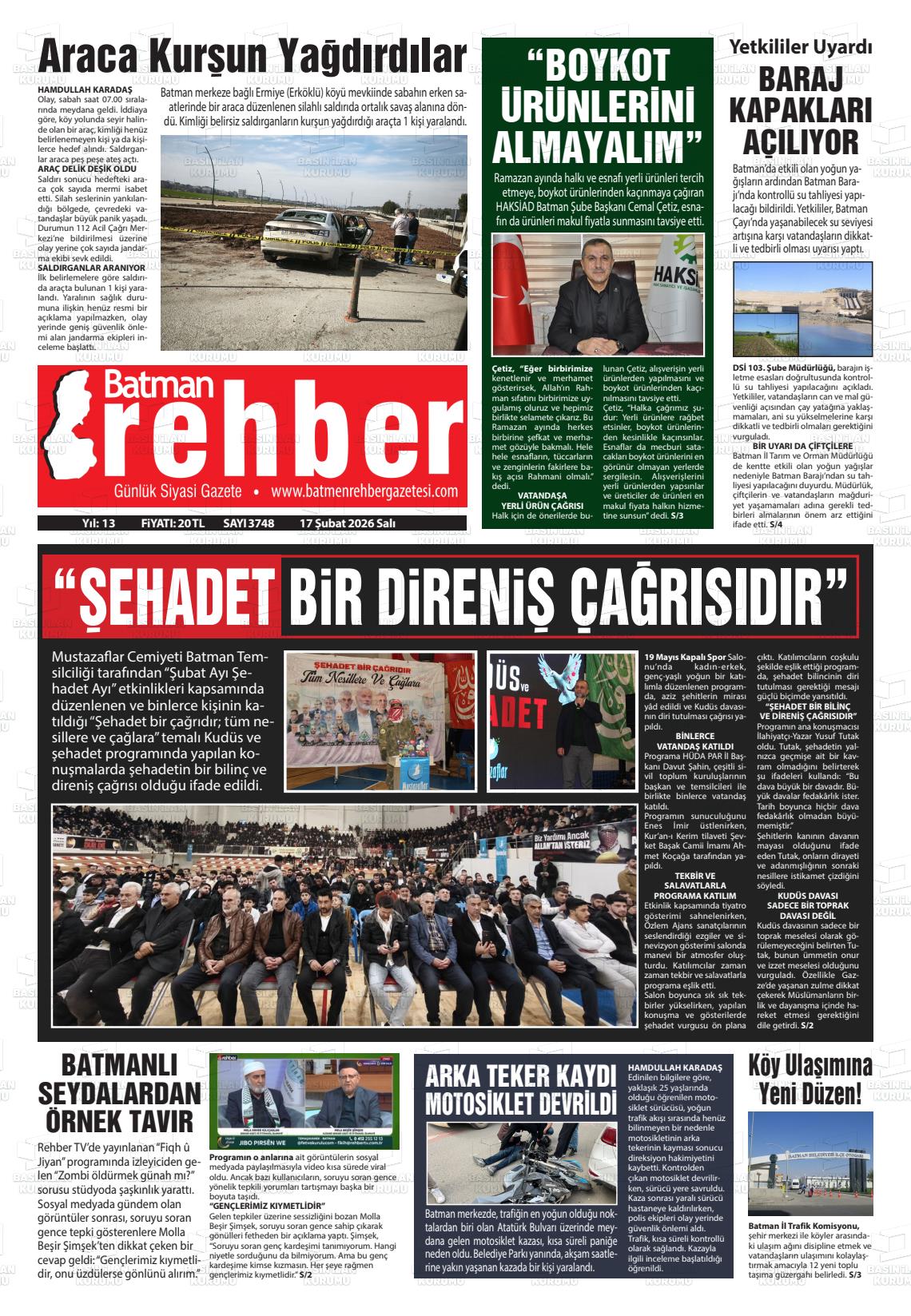 17 Şubat 2026, Salı Günü Manşeti